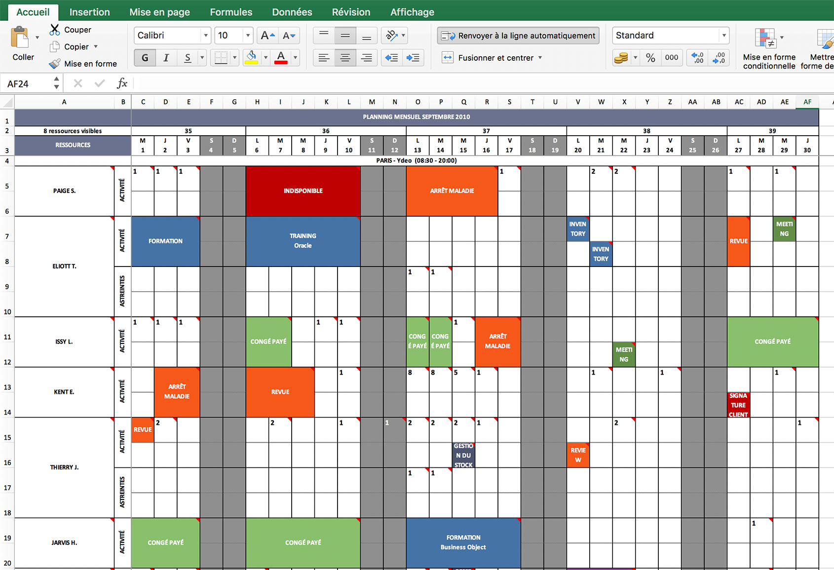Planifiez l'activité RH de votre entreprise sur un planning sécurisé et accessible directement depuis Internet et, contrairement à Excel, en simultané.