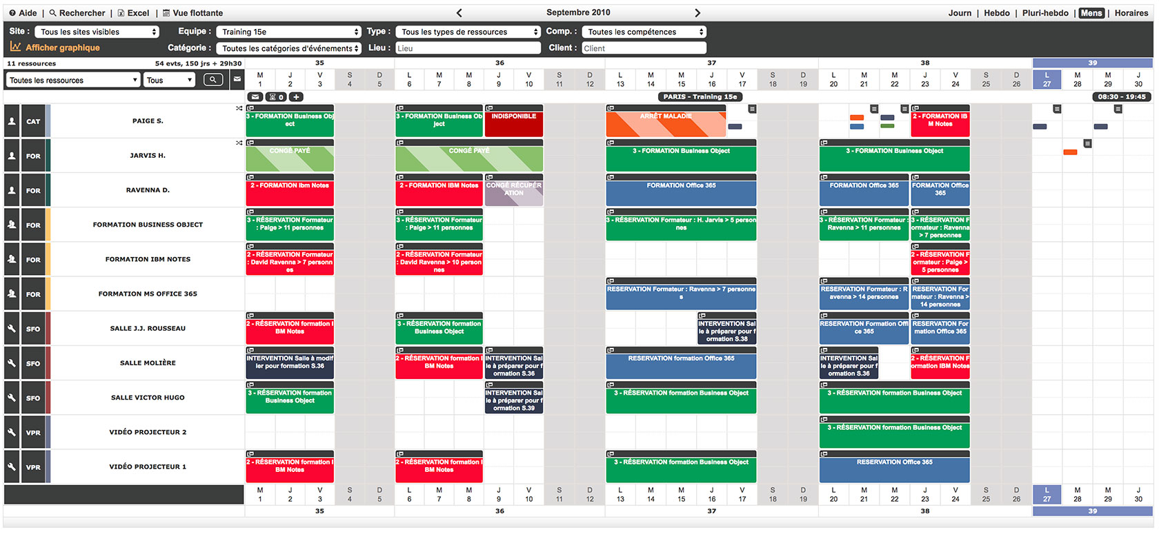 - Gérez le planning des sessions, des salles et du matériel de formation.