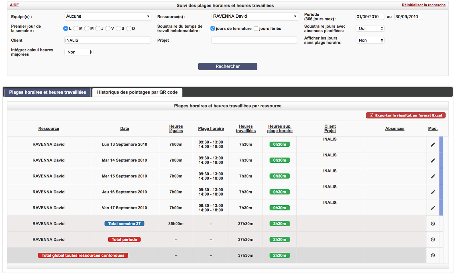 Suivez ces pointages en temps réel et créez facilement des rapports sur les heures travaillées et heures supplémentaires chez vos clients. Exportez ensuite ces rapports au format Excel.